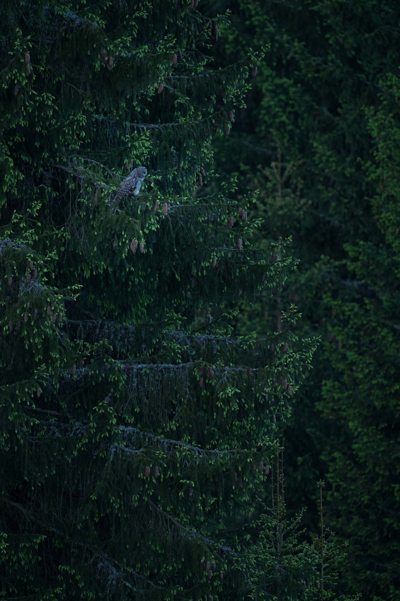 Po odpolední pauze jsme již věděli kde hledat puštíka a zaměřili se na oblast kde ráno lovil. Puštík lovil na lesní mýtině stejně jako ráno. Bohužel nebyl již tak spolupracující jako ráno a více se schovával pro hezkou fotografii. Do dlouhé noci jsme pozorovali dokonce tři páry puštíků. Pomocí termovize jsme díky Martinovi pozorovali stáda jelenů a laní stahující se do vesnic před vlky. Na tento výlet jsem vzal tátu a dle jeho slov to byl super výlet.